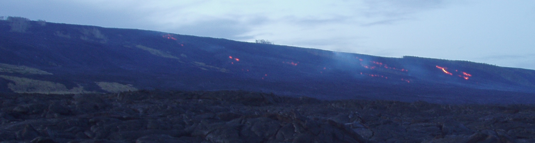 At this point it was nearly sunset. I wasn’t going to miss this. So I started on the 1½-mile walk out to the viewing area. Katie, on the other hand, was already completely freaked out by being on an active volcano. Sam Adams had saved the day at first, helping her relax enough to handle the Crater Rim drive, but it had worn off by the time we headed down Chain of Craters, and there wasn’t time to go back for a second beer. There was no way she was getting any closer to flowing lava, so she stayed in the car while I took a hike. (That doesn’t sound quite right…)