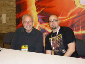 I got Naomi Novik to sign the latest Temeraire novel, Crucible of Gold and Ernest Cline to sign the audiobook of Ready Player One. (I’d read the book on the Kindle, and discovered that morning that Wil Wheaton reads the audio version. Apparently they’d been trading recommendations for quite some time, informally, and Wil was quite pleased to get to do the audio version. He didn’t pre-read the book, so he didn’t know he was in it until about the page before, and still managed to read it “like a boss.”) Humberto Ramos signed my copy of Impulse #1 (previously signed by Mark Waid), and I caught up with Fiona Staples for Saga, and Joe Benitez for Lady Mechanika. I talked briefly with Flash co-writer/artist Brian Buccellato, and intended to head back to his Artist’s Alley table later, but somehow never quite made it.