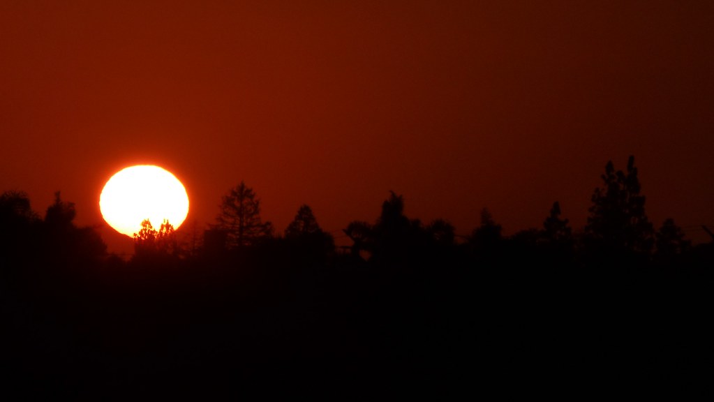 I’d half-hoped to get some shots of the setting sun while it was still eclipsed, but you really have to wait until it’s almost at the horizon…just a few minutes after the eclipse ended. I settled for the next best thing, and caught this shot of the sun “eclipsed” by a pair of trees.