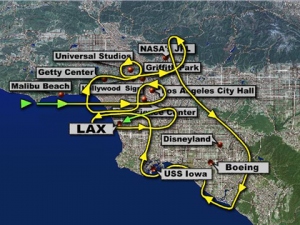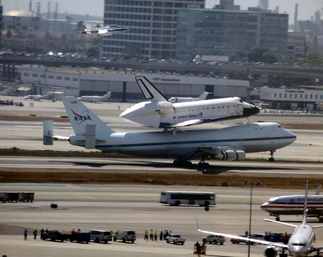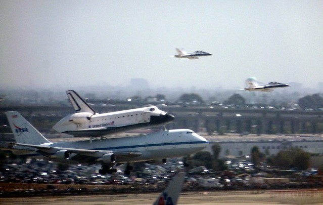 This time it was being carried by an airplane, from another airport. Safety wasn’t any more of an issue than a normal flight, so they landed at a regular airport. (Though it was escorted by military aircraft.) And since it was the last-ever shuttle flight, there was a bit of showmanship to the flight plan: