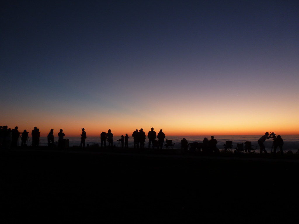 I arrived just minutes before sunset, and found thirty or so people lined up along the western edge of the hill with telescopes, binoculars, and cameras on tripods. It reminded me a lot of the eclipse I watched last May (also in Palos Verdes, though at a different park).