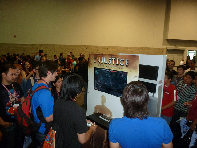 Speaking of the Graphitti line, you can see it in the background of this shot of people playing the Injustice: Gods Among us demo at the DC Comics booth.