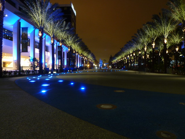 Since last year, the Anaheim Convention Center has replaced a long driveway between hotels with an extended pedestrian area, with fountains at either end. This turned out to be fantastic for the convention, because it gave people a place to hang out, visit, hold photo shoots, and more. This was also where five food trucks set up shop to handle the lunch rush, which added not just supply but more variety. Compare to San Diego, where most exits from the convention center make you cross a driveway, a major street, and two sets of railroad tracks, one for freight and one for the trolley, before you get to any sort of open space, and even that has been co-opted by off-site events.