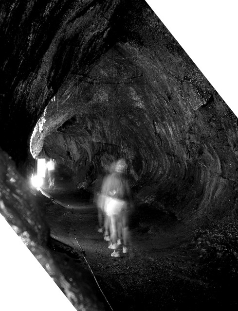 A long exposure shot in Thurston Lava Tube on the big island of Hawaii, capturing ghostly images of people walking through. I originally posted a color version along with other photos from the visit back in 2005, and converted it to black and white for my entry in this week’s “eerie” photo challenge on WordPress.com. If I’d known it would look so much better in black and white, I would have converted it years ago.