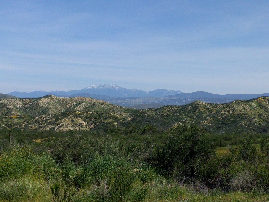 I kept thinking of all the times we’d gone out to Lost Valley scout camp when I was a teenager. The route looked a lot the same — even the diner with the giant ice cream cone sign — but it’s a lot greener in March than it usually is in summer or fall. As we passed Oak Grove, then the turnoff for Chihuahua Valley Road, and then Warner Springs, the landscape on one side of the valley gradually grew rockier and drier. Pastures gave way to rockier fields until we crossed over the mountains and looked out on the desert below.