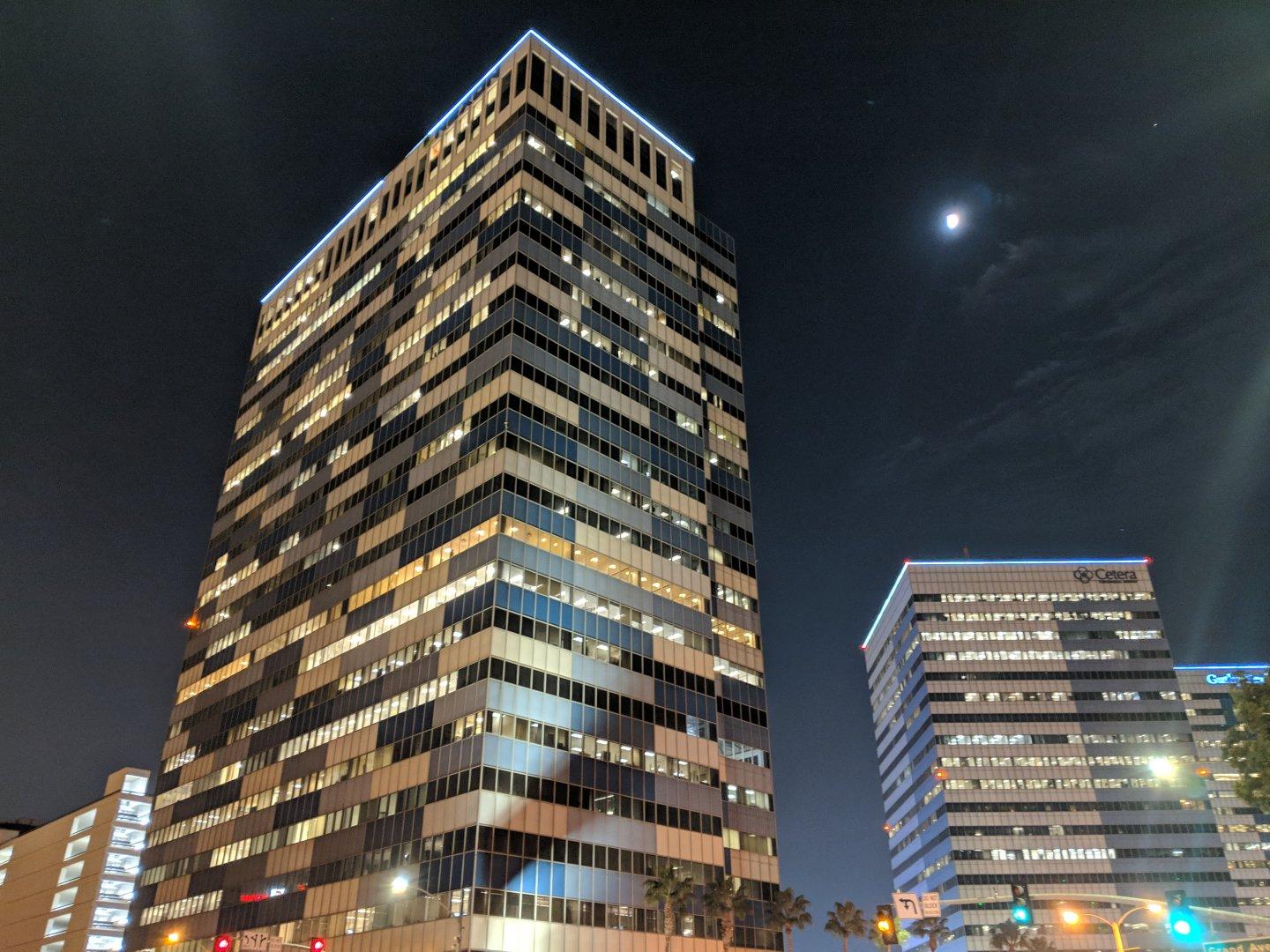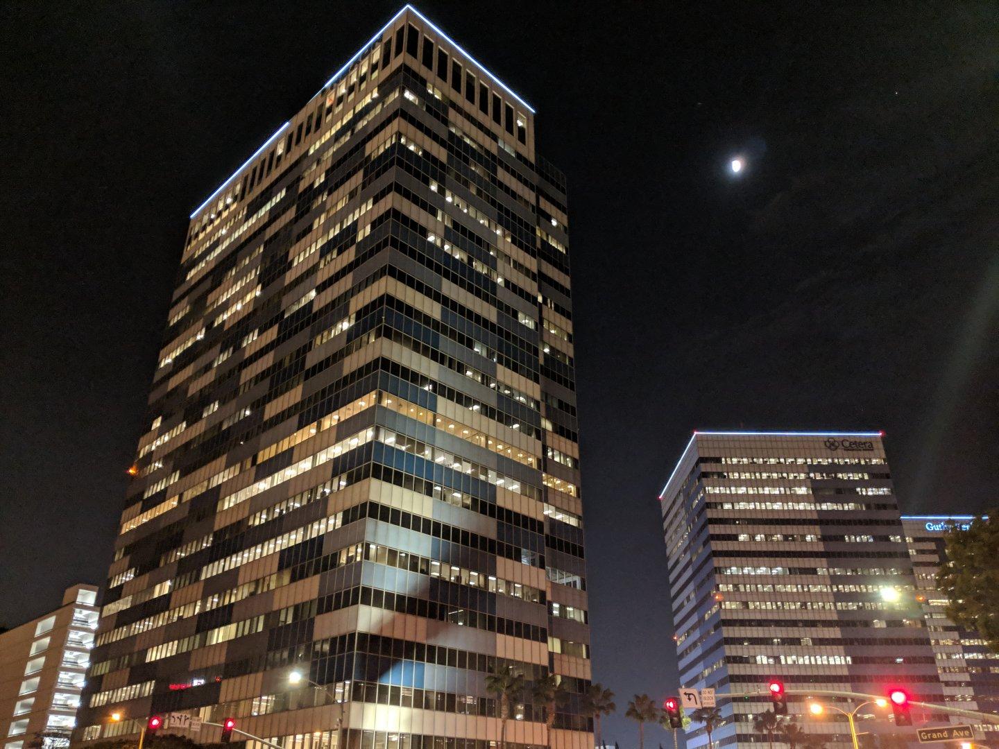 This is adjusted slightly to keep the colors from being too light. And it actually isn’t the best example, as it turns out the nighttime city scene already has enough light for the existing HDR+ mode. I’m going to have to try it on some darker scenes somewhere, but it’s still pretty cool. After the cut I’m posting a version with the phone’s regular mode, and the unaltered Night Sight photo. You can see they’re pretty close, but the Night Sight version picks up a bit more of the color, and it’s a little brighter.