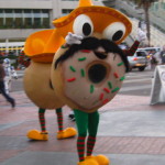 As Comic-Con International strains at the boundaries of the San Diego Convention Center, it’s begun spilling over into the city. Go back 4-5 years, and the most you would see would be the occasional street light banner or bus stop advertisement. Now, there are people handing out flyers as far out as the trolley stops, and walking around the Gaslamp in ridiculous mascot costumes (the sandwiches a few years ago, the donuts this year). There are displays near the trolley stops. There are buses wrapped with full advertisements for movies and TV shows, shuttle vans labeled U.S.S. Enterprise — there was even an ice cream truck parked for several days on 5th street with a Eureka ad on the side (and probably something inside it, but I was always on the other side of the street when I saw it).