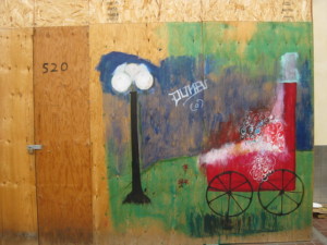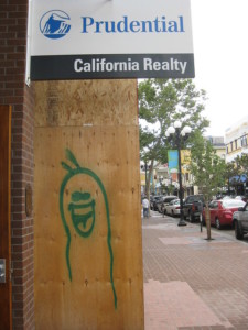 We walked up and down Cedar Ave. from the hotel to the Little Italy trolley stop at least once a day, stopping at the same It’s a Grind coffee house we frequented two years ago. Strangely, we didn’t notice this message on the street until our last day in town: