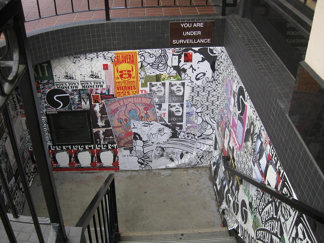 And then there was this “You Are Under Surveillance” sign. Something about the combination of the sign, the stairway, and all the posters on the walls just looked interesting.