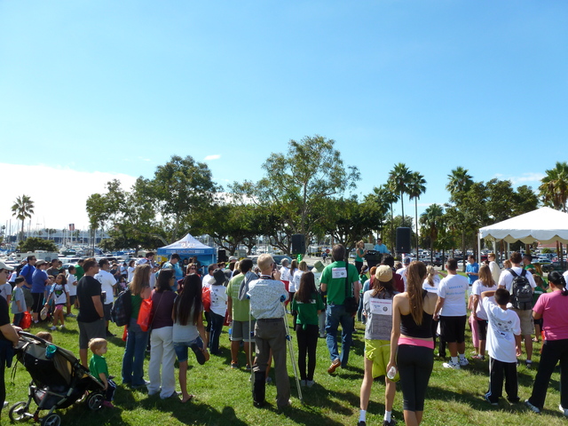 We’ve been walking in the Los Angeles event for four years now. Our first year was in Santa Monica. It moved to Long Beach in 2012. That year the planned route was blocked by construction and it took about ten minutes to walk. Last year was the jetty, and this year we walked from the western end of Marina Green Park, across from Rainbow Lagoon, along the beach to the Long Beach Art Museum.