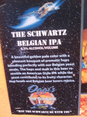 The latest seasonal beer at Oggi’s* is The Schwartz, a Belgian IPA. And just in case the “May the Schwartz Be With You” tagline wasn’t clear enough…well, check out the poster: