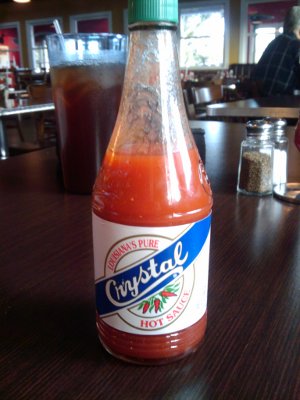 Thankfully, Crystal Hot Sauce is not clear (as you can see!), and actually tasted pretty good.