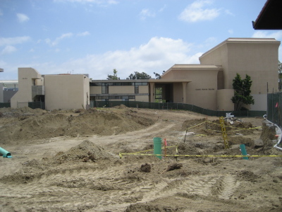 The sad thing, though, was that they’re tearing up the large grass area in the middle of the Claire Trevor School of the Arts and putting in another building. Everything in the quad bordered by the Claire Trevor Theater (formerly the Village Theater), the Studio Theater, the scene shop, Studio Four, and the drama offices is a big fenced-off area of dirt.