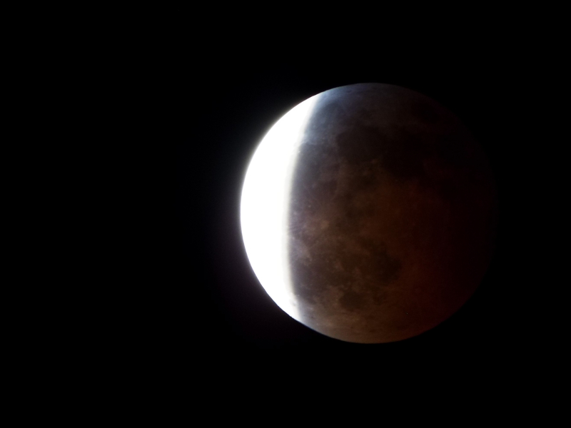 It’s the third lunar eclipse he’s seen, though one of them we didn’t get to see much of since it was so cloudy. And while it’s not as cool as a total solar eclipse, it’s something you can see with no special equipment by walking out into your front yard anywhere in the world that has a view of the moon during the several hours it takes the Earth’s shadow to move across it.