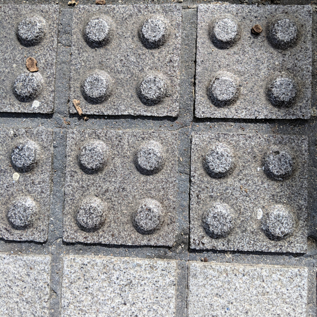 All tiles are modular (like WordPress’ new editor). Some go a bit further, like these tiles on a sidewalk corner that look like LEGO bricks.