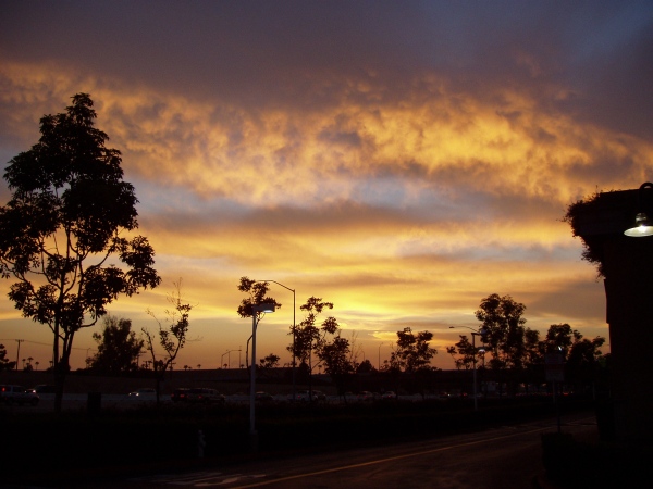 The first photo is from Wednesday morning around 8:00. Katie took it on our drive to work. There’s actually another shot that shows more of the sky, but this one is more striking. The second shows tonight’s sunset as seen from the Metro Pointe parking lot. Yes, it’s a freeway in the foreground, but the sunset itself was incredible. Both thumbnails are linked to larger copies of the photos.