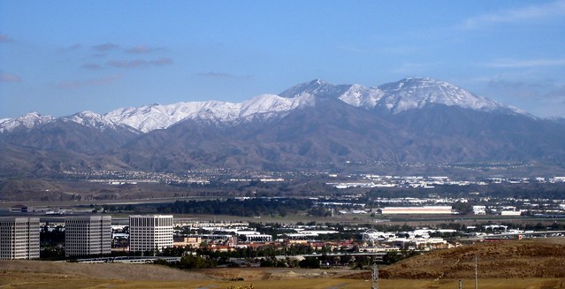 Yesterday morning on my way to work, I looked over and saw the San Gabriel Mountains practically glowing with the morning light of the sun. A layer of cloud blocked the sun where I was, making the distant peaks look that much brighter. I stopped at a spot where I knew I’d have a good view of the mountain range.