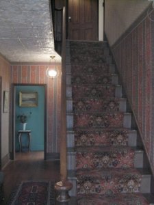 We went back to Cafe 222 for breakfast (it seems appropriate that we did it twice), then wandered the Gaslamp district a bit — which is a little creepy at that hour, when very little is open aside from coffee places and restaurants that serve breakfast, and few people are out and about aside from people working at deliveries, taking out trash, etc. and homeless people. Once the William Heath Davis House opened, we went into the museum and took a self-guided tour.