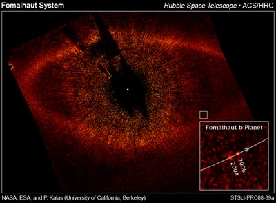 Update: Hubblesite has more on Fomalhaut including this image showing Fomalhaut B’s location in 2004 and 2006: