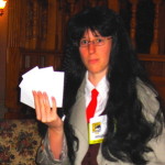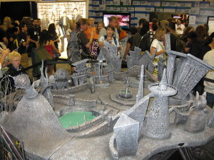 I went to a couple of panels by science fiction authors, both one-person shows: Connie Willis and Robert Sawyer. Connie Willis was very funny as she talked about writing in general, about her upcoming novels, and answered questions from the audience. Robert Sawyer mostly talked about his experience in the publishing industry, and managed to make it interesting. I followed it up with a panel on lost civilizations and secret societies that should have been fascinating, but was dull enough that I left only 10 minutes in and decided to hit the art show instead. Katie attended “Humor in Science Fiction” and the Bones panel, and I finished the programming day up with Final Crisis Management.