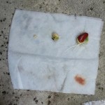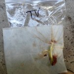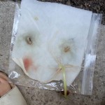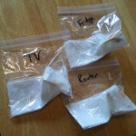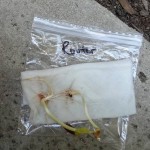 Each bag contained one kidney bean, one black-eyed pea, and one seed from the red bell pepper I cut up for dinner. I put a section of select-a-size paper towel, folded twice, in each and set the seeds inside the second fold. Each bag got 15 mL of Brita filtered water and the air was squeezed out before sealing. Then I left them around the apartment for several days to see if they’d sprout. This is a picture of what resulted.