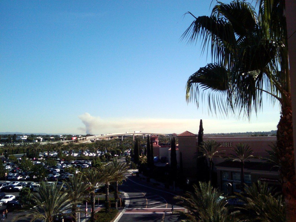 My first hint that something was wrong this morning was the extremely yellow sunlight coming in around the blinds as I got ready for breakfast, the color you expect right at sunrise or sunset, not after the sun’s already up. Once I walked outside it was clear there was a fire somewhere in the area, and as I walked around the building I could see smoke filling half the sky.
