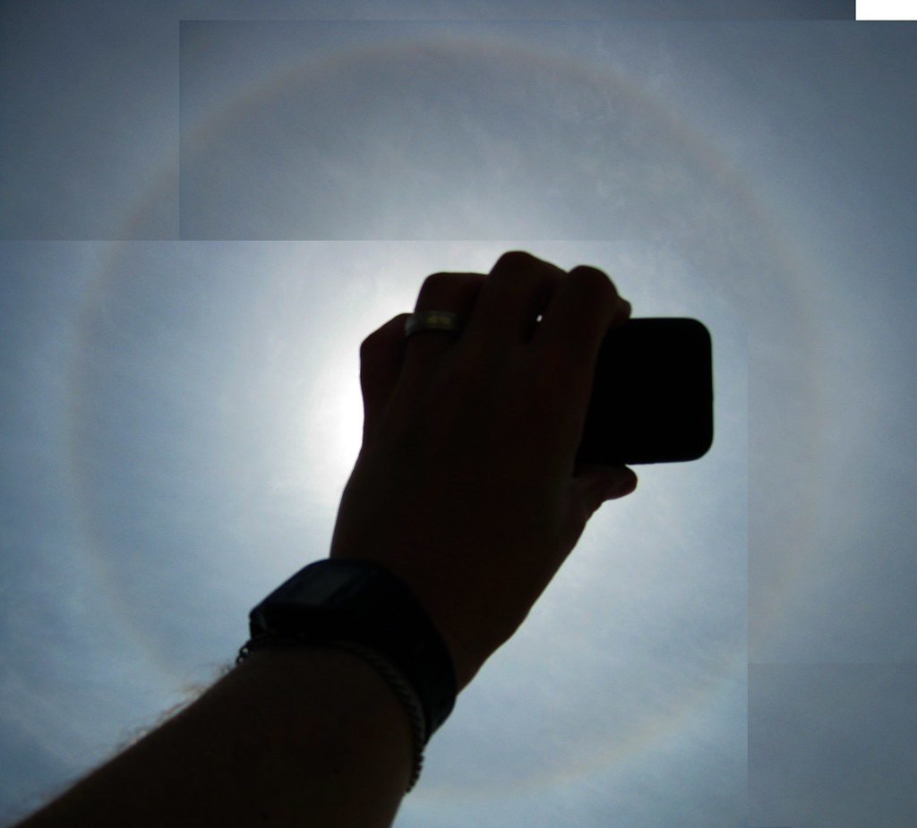 I noticed the halo around the sun as soon as I walked out the door for lunch on Thursday. The rainbow cloud? That appeared as I walked past a building. I saw it as soon as the southern sky came into view again.