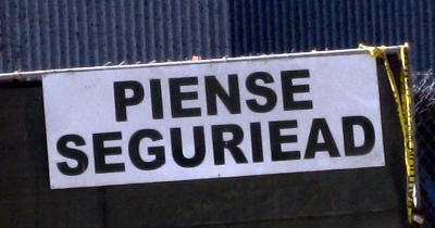 Literally it means “Think Safety” — or it would if it said “Piense seguridad.” The typo makes this the Spanish equivalent of “Saftey First.”