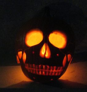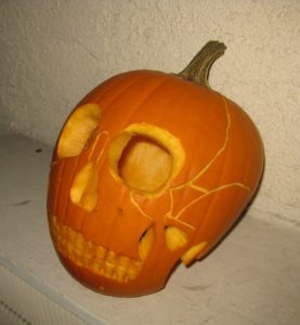 Katie carved this incredible anatomically-correct skull Jack-O-Lantern for Halloween today. Update: Check the comments for her writeup on how she carved it.